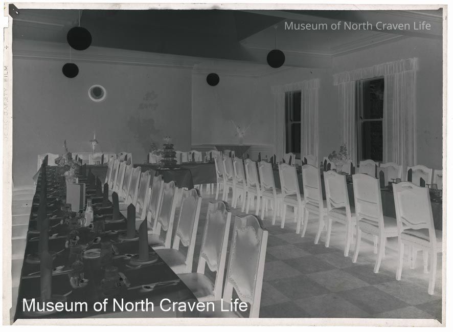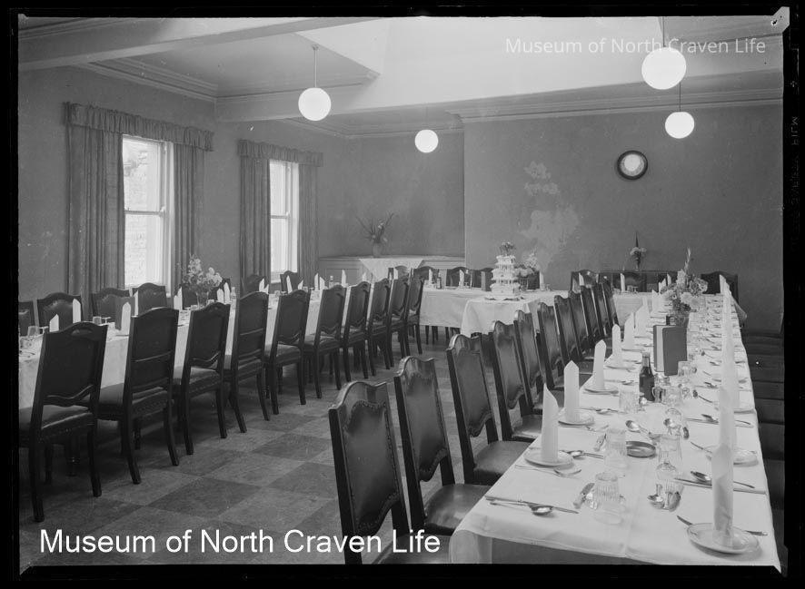 A gelatin silver acetate film negative. A view of the interior of the Ashfield Hotel (now Settle Social Club in Duke Street). A dining room with tables set for a mealCollection