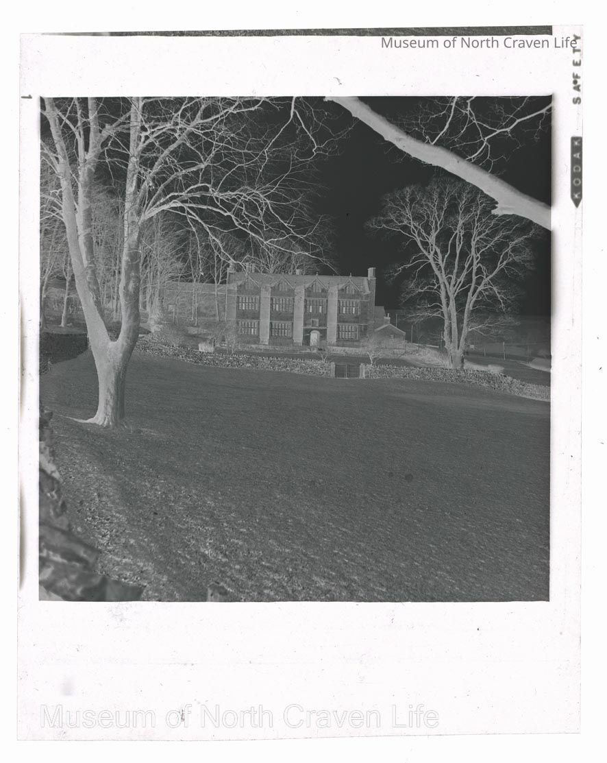 A gelatin silver acetate film negative. A view of the Eshton Estate - House exterior seen across the lawnsCollection