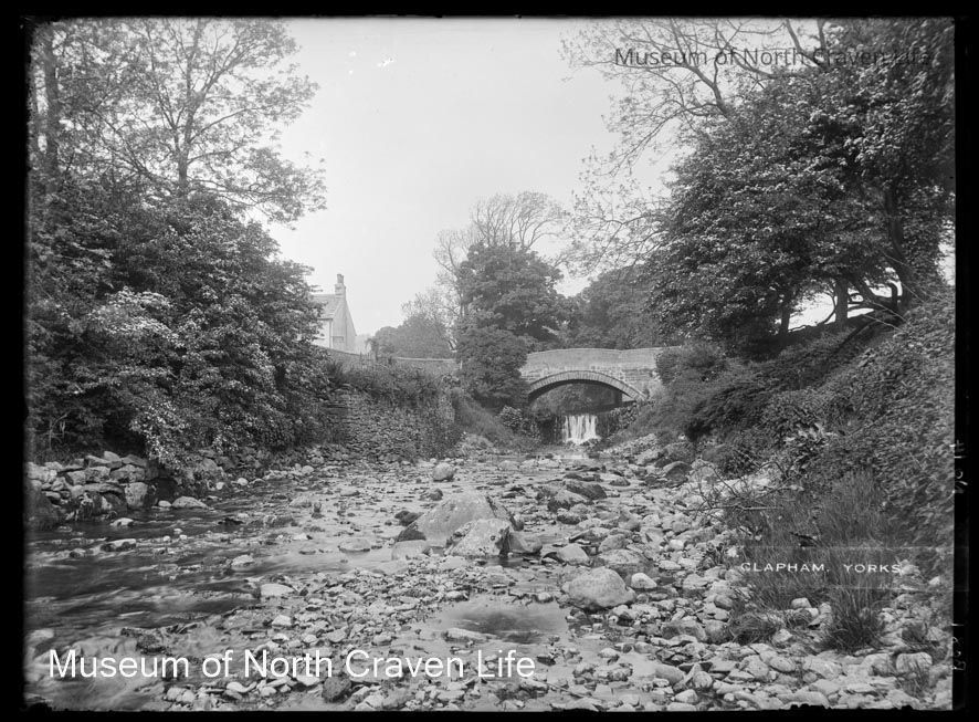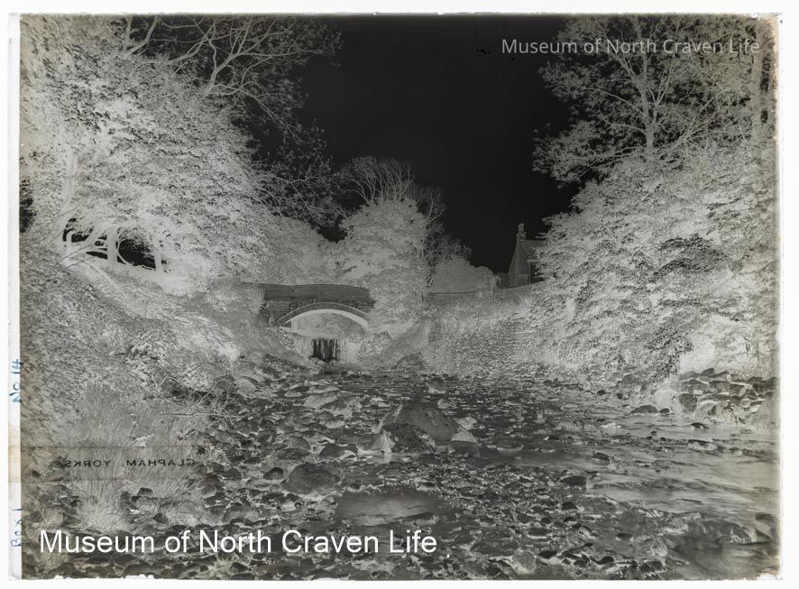A half-plate gelatin silver glass negative. View of Clapham, Yorkshire. Clapham Beck from the south; bridge in backgroundCollection
