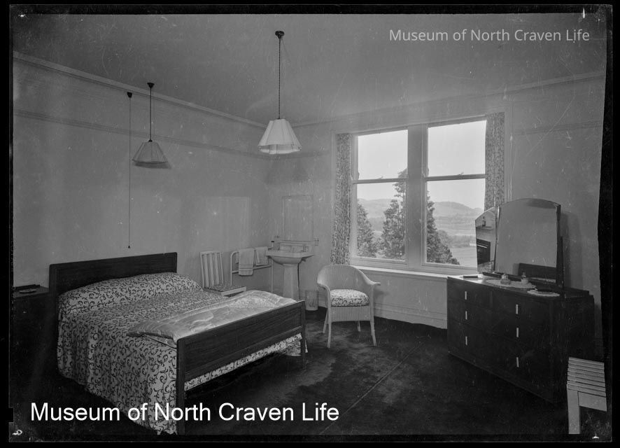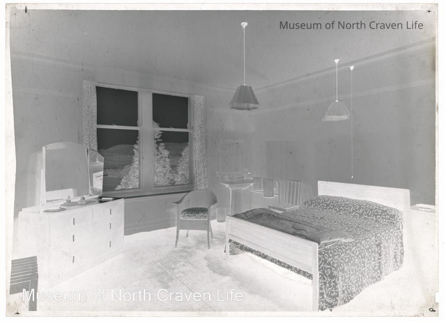 A gelatin silver acetate film negative. A view of a bedroom at WoodlandsCollection