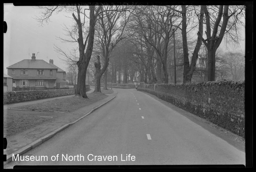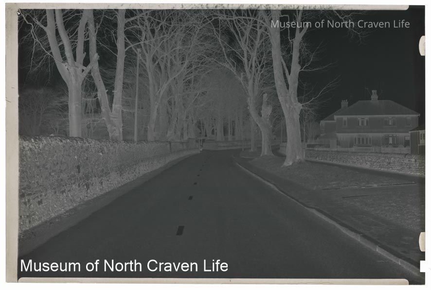 A gelatin silver acetate film negative. A view of tree-lined Falcon Road in Settle (Skipton Road)Collection