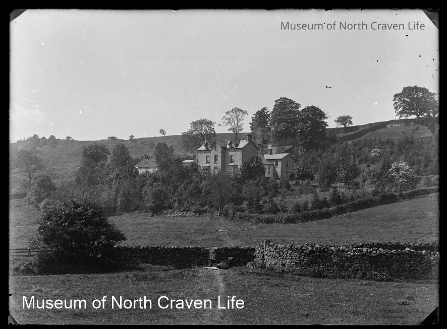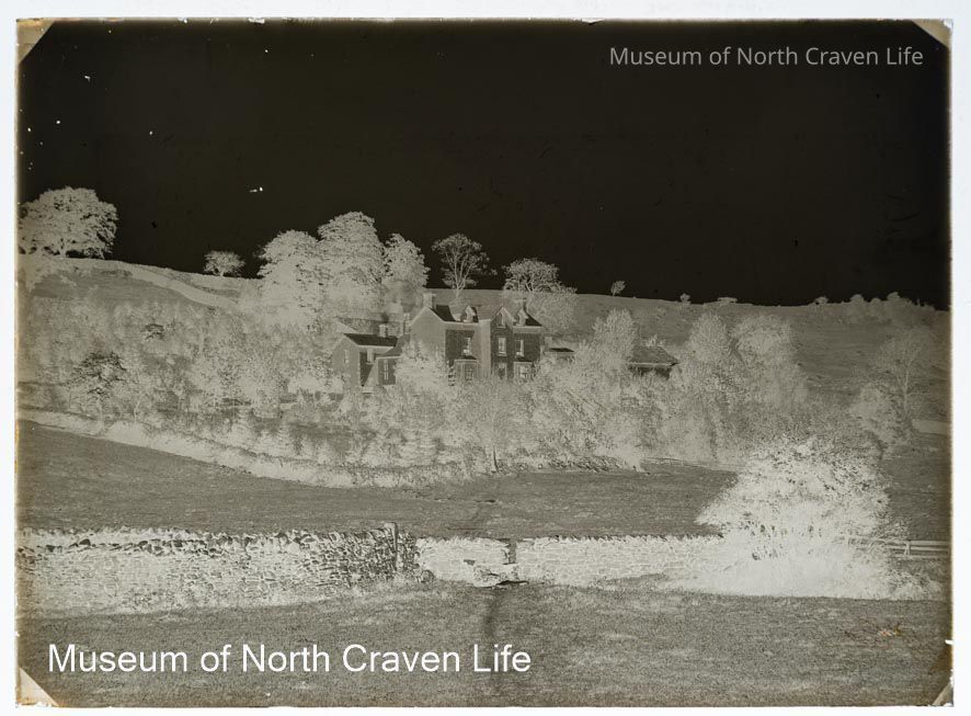View from a distance of a large house in a rural setting. A dry stone wall and style appear in the foregroundCollection