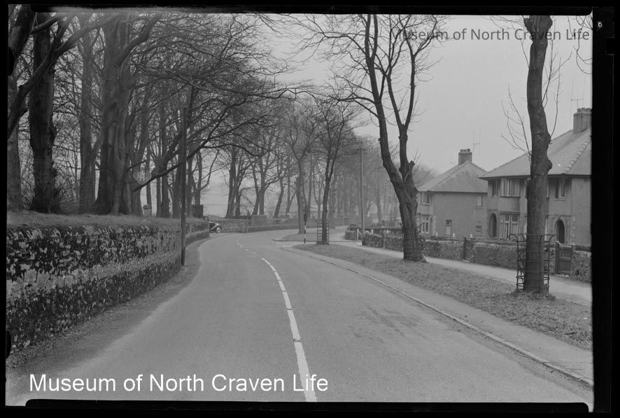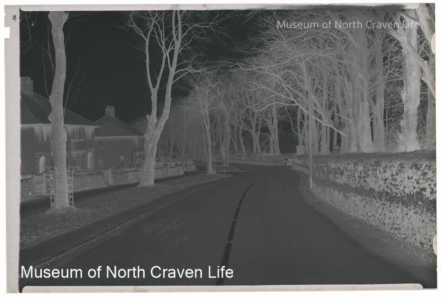 A gelatin silver acetate film negative. A view of tree-lined Falcon Road in Settle (Skipton Road)Collection