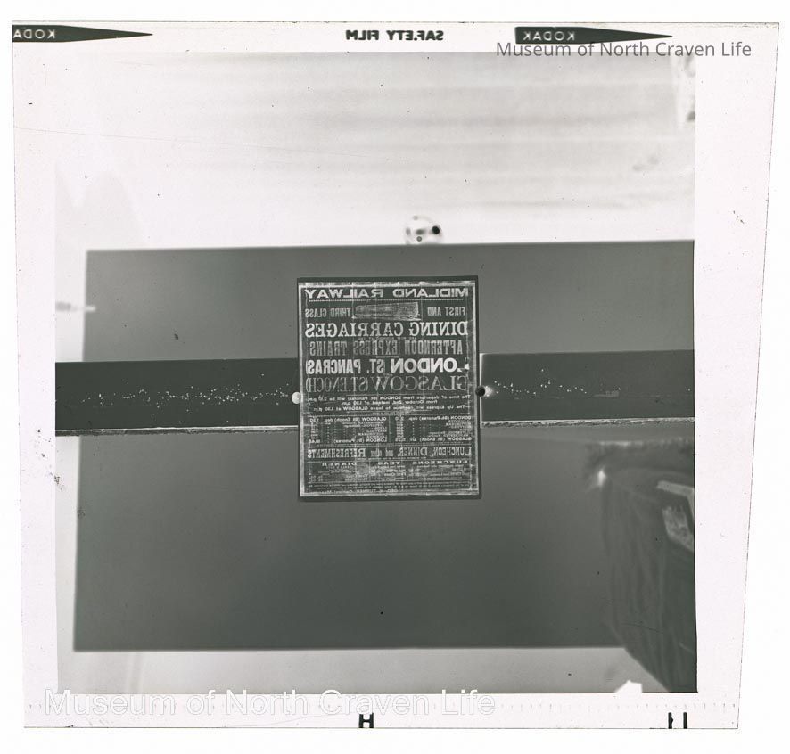 A 2 ½ x 2 ½" b/w acetate film negative. A view of a Midland Railway poster advertising travel between London St Pancras and Glasgow St EnocidCollection