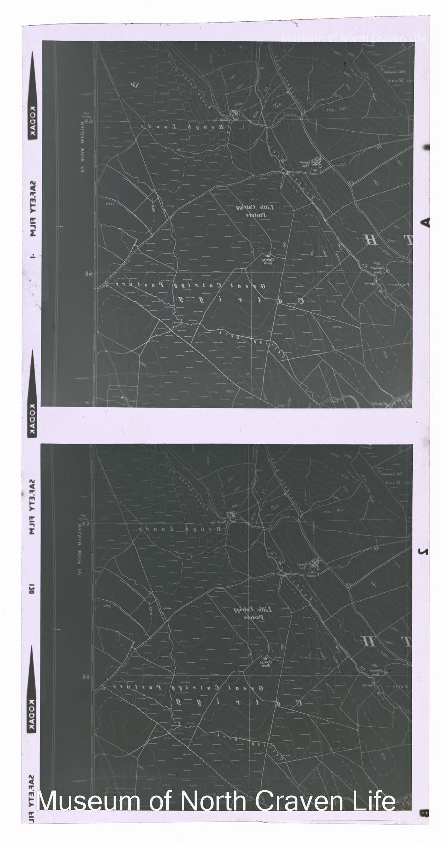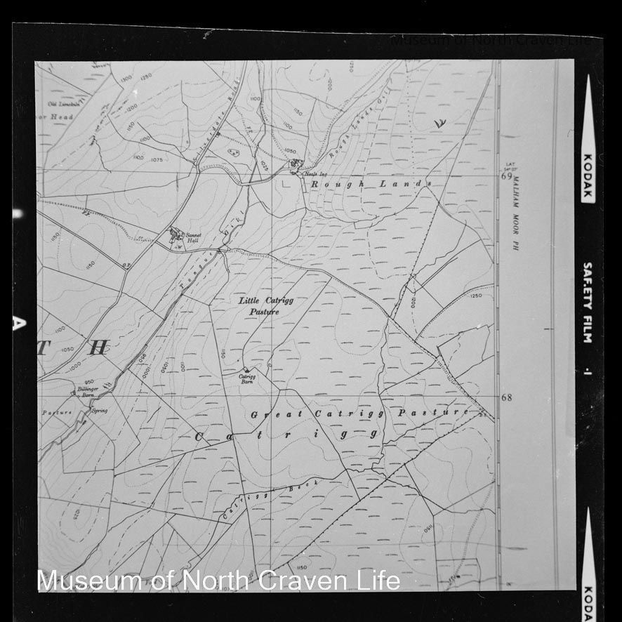 A 2 ½ x 2 ½" b/w acetate film negative. An image of a map of Great Catrigg Pasture, near Langcliffe in North YorkshireCollection