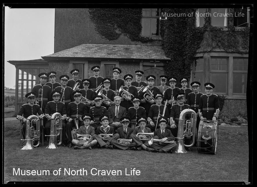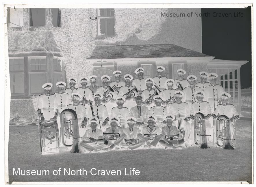 An acetate film negative. A group portrait of Bentham Brass BandCollection