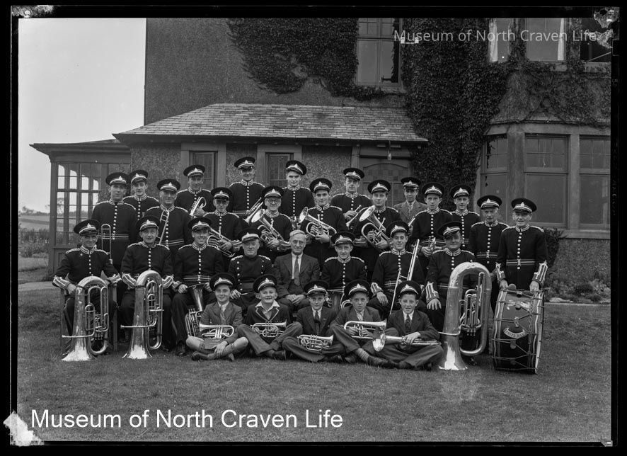 An acetate film negative. A group portrait of Bentham Brass BandCollection