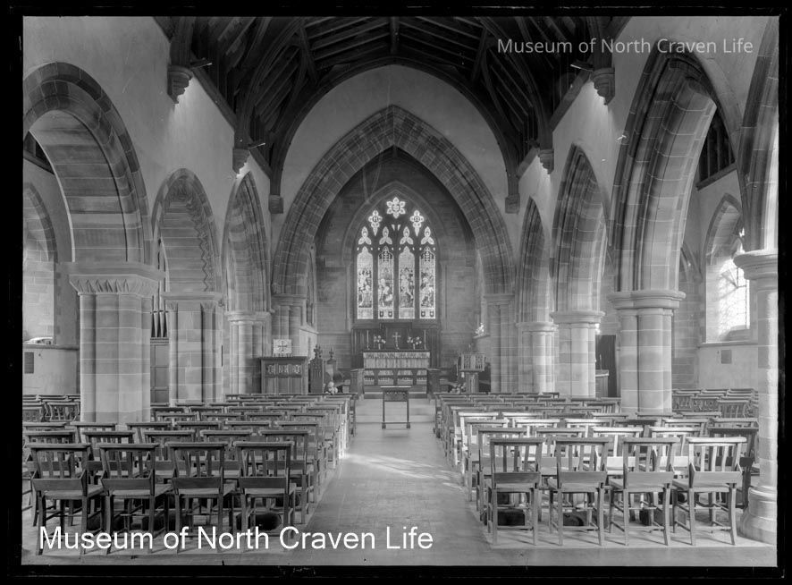 A half-plate gelatin silver glass negative. A view of the interior of a church looking towards an altarCollection