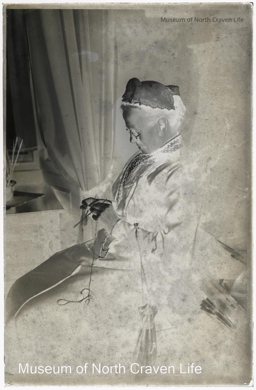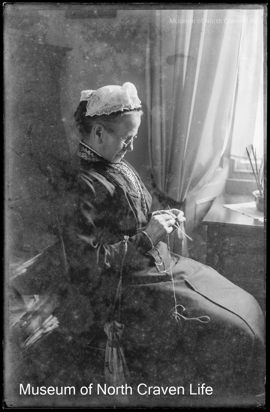 A 6.5x4.5in gelatin silver glass negative. A portrait of an old lady seated at a window, knittingCollection