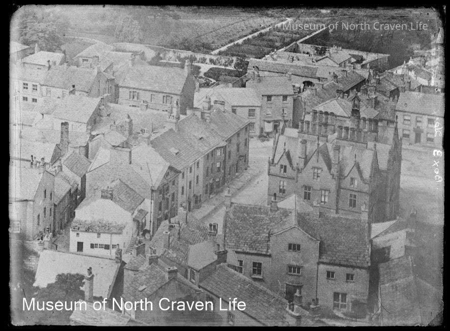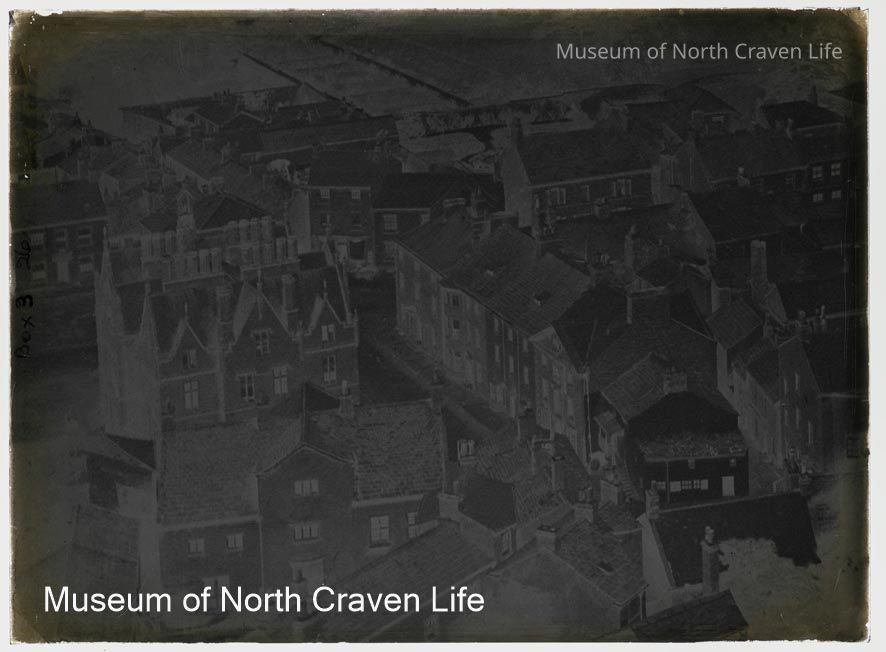 A half-plate gelatin silver glass negative. An aerial view of the Town Hall and Cheapside in Settle.Collection