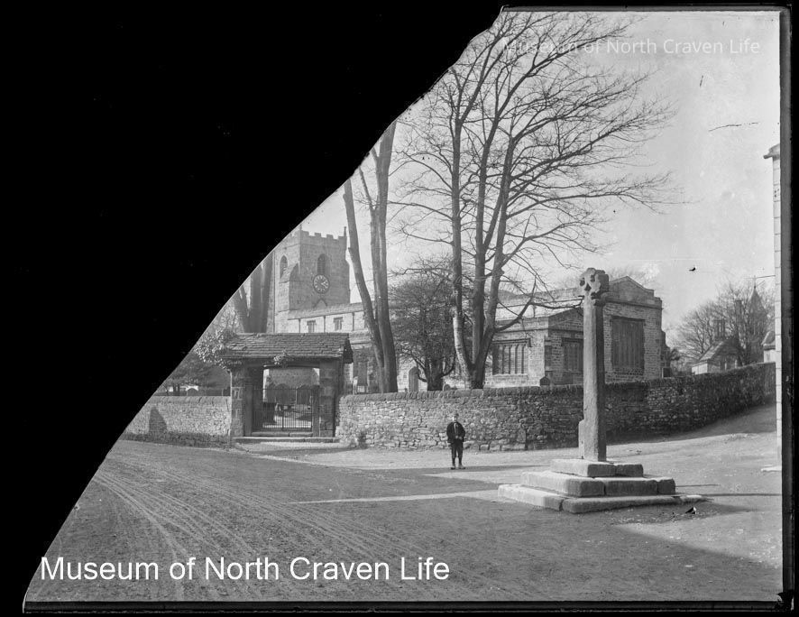 A full-plate gelatin silver glass negative. A view from behind the Market Cross towards St. Alkelda's Church, GiggleswickCollection