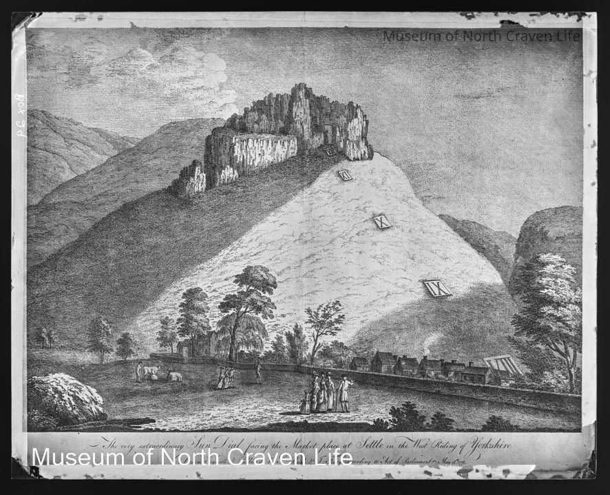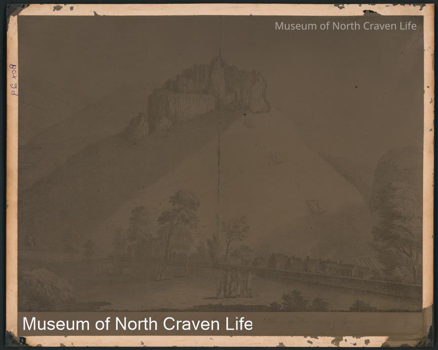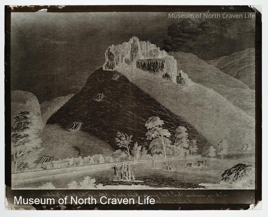 A wet plate collodion negative. A reproduction of an etching of Castleberg in SettleCollection