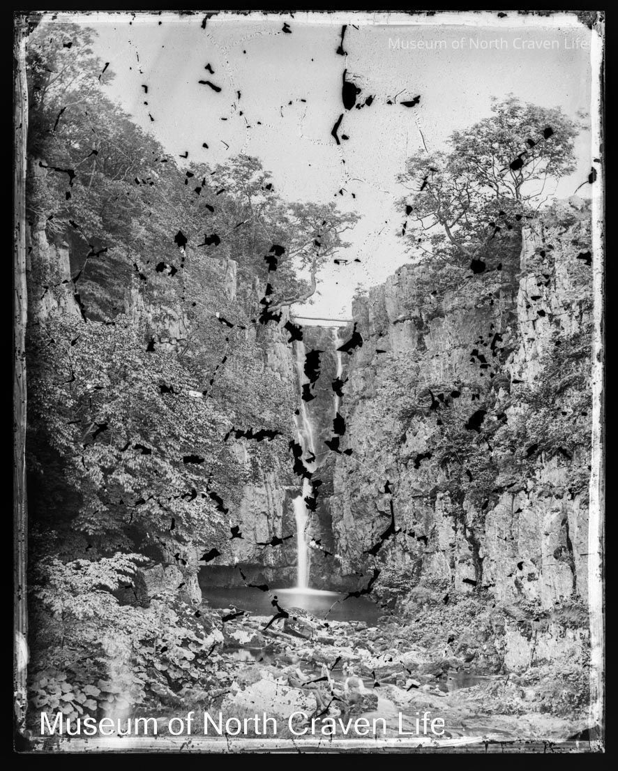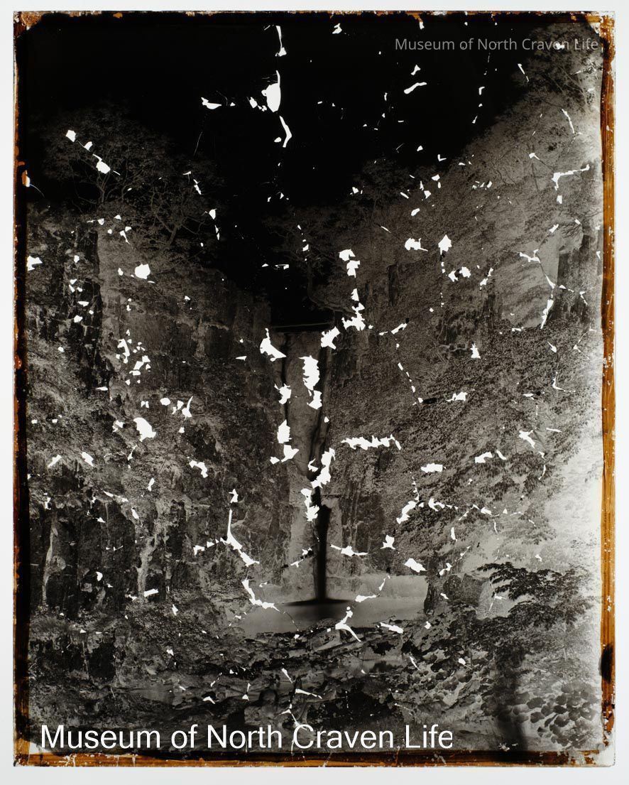 A wet plate collodion negative. A view of Catrigg Force - a waterfall between two steep limestone cliffs.Collection