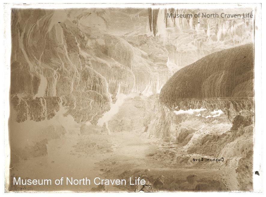 A half-plate glass negative. A view of the Mushroom Bed Formation inside Ingleborough Cave.Collection