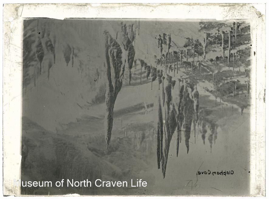 A half-plate gelatin silver glass negative. A view of stalactites inside Ingleborough Cave.Collection