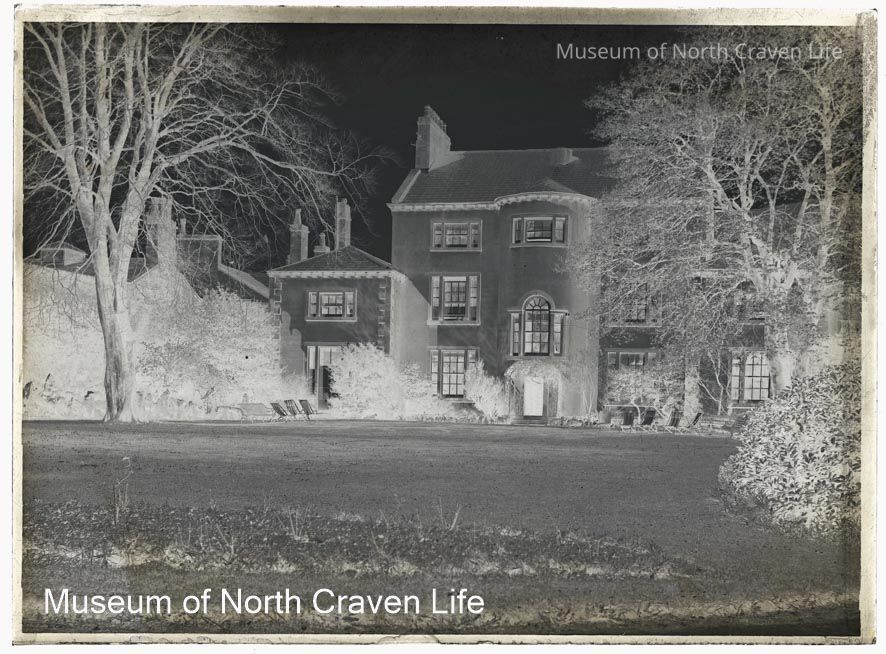 A half-plate gelatin silver glass negative. A view of the Ashfield Hotel (now Settle Social Club in Duke Street), western elevation, across a lawnCollection