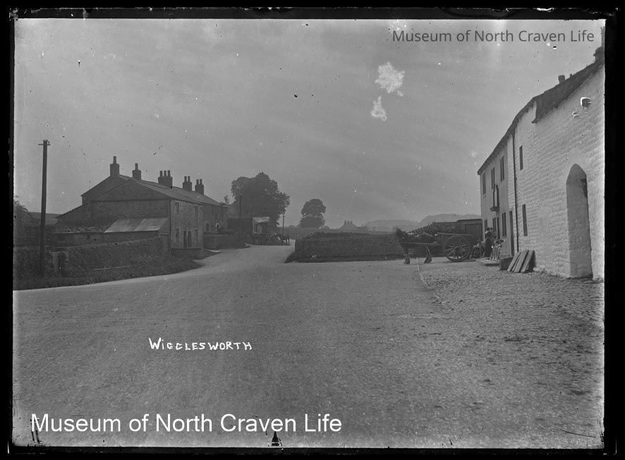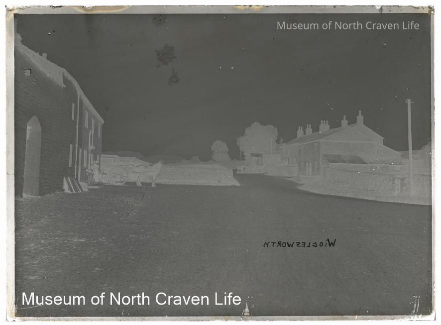 A half-plate gelatin silver glass negative. A view of Wigglesworth with two horses and carts standing in the streetCollection