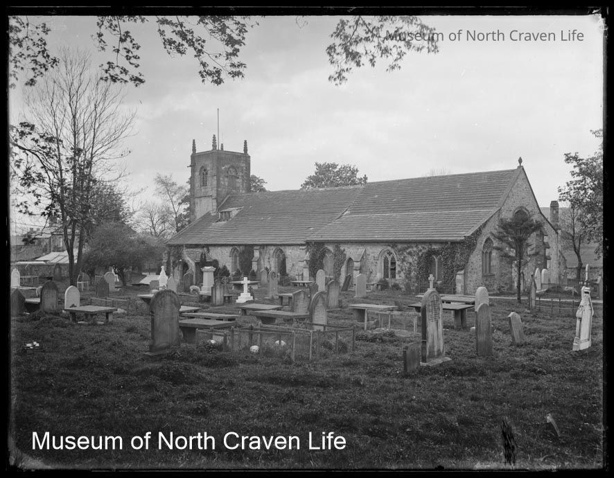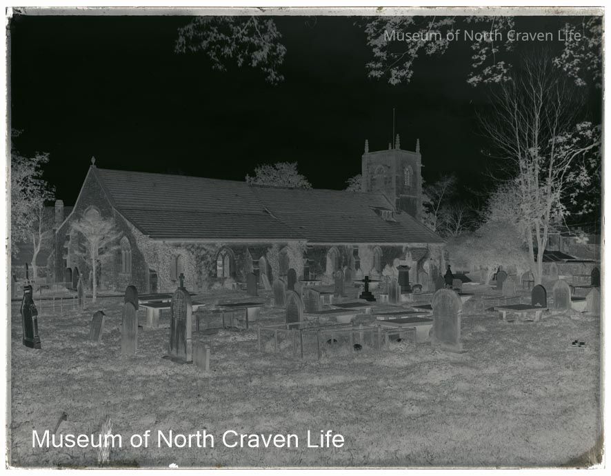 A full-plate gelatin silver glass negative. A lateral view across the graveyard of the church at Long PrestonCollection