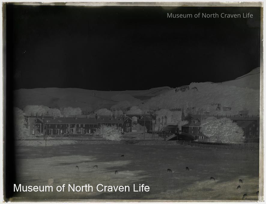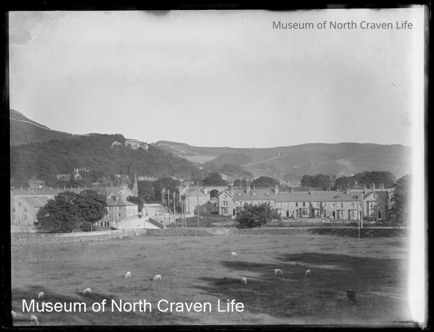 A full-plate gelatin silver glass negative. A view of Settle from the High School. Sheep graze in the foregroundCollection