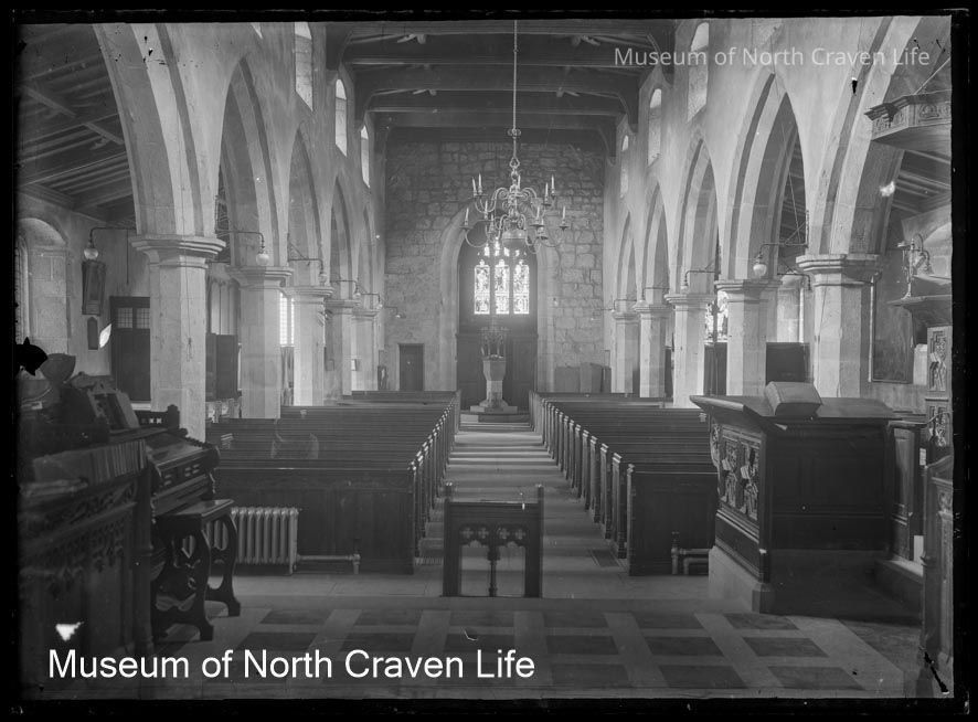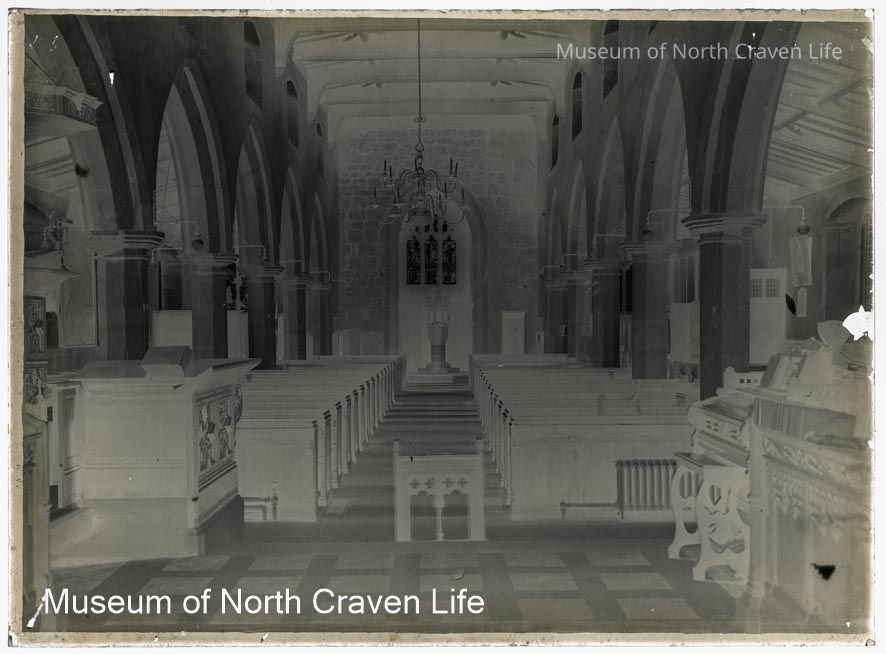 A half-plate gelatin silver glass negative. A view of the interior of St Alkelda's in GiggleswickCollection