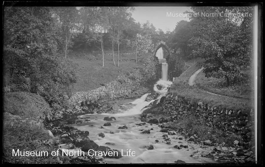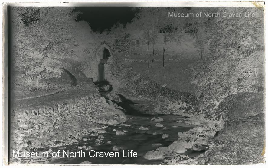 A half-plate gelatin silver glass negative. A view of Clapham waterfall and bridge in the backgroundCollection