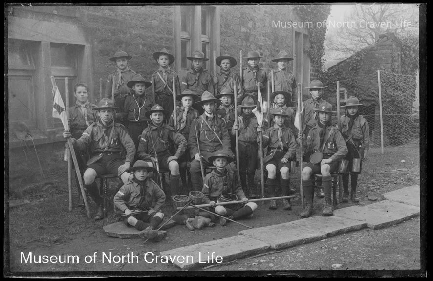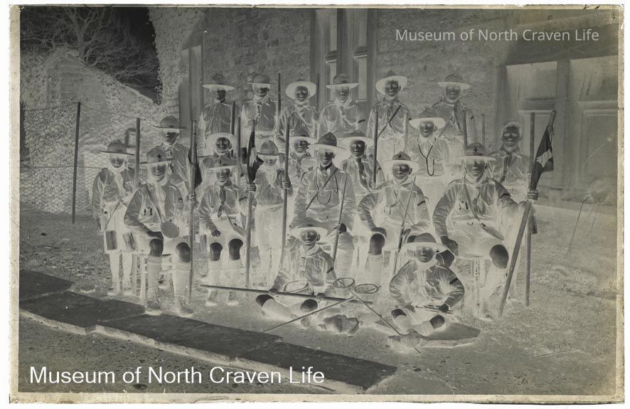 A half-plate gelatin silver glass negative. A group portrait of boy scouts in unifom, seated and standingCollection