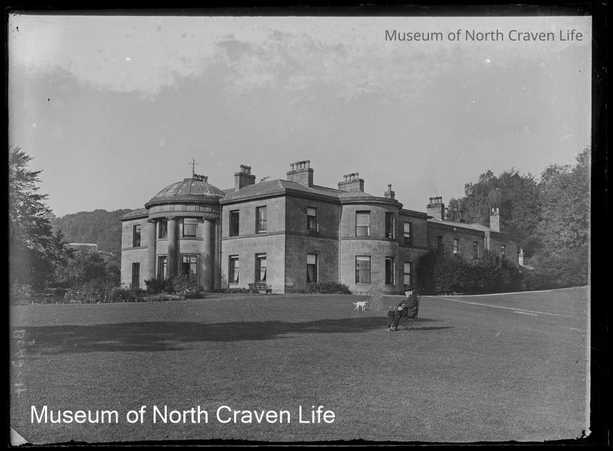 A half-plate gelatin silver glass negative. A view of Ingleborough Hall.The Hall itself dates to 1847 when the Farrer family of London owned it. They used it as a hunting lodge and country home. The Grade 2 listed building includes an icehouse, underground tunnel and eight acres of rich woodlands and formal gardens. (Google) A full history of the Hall and the Farrer connection is available at https://www.artwarefineart.com/gallery/ingleborough-hall-clapham-yorkshire-dales-august-12th-1893.Collection