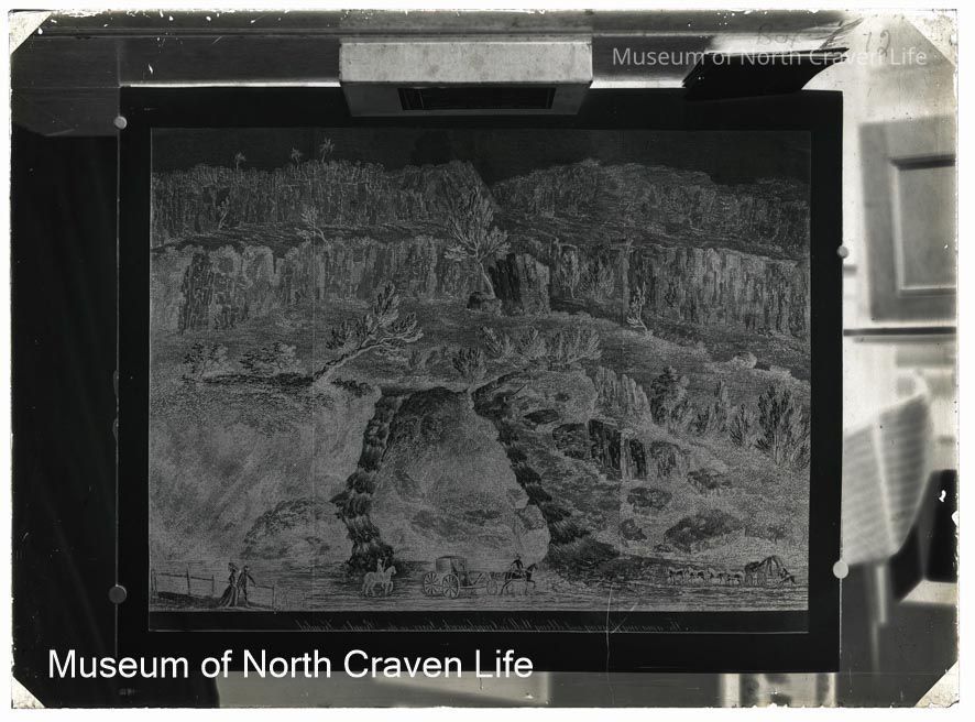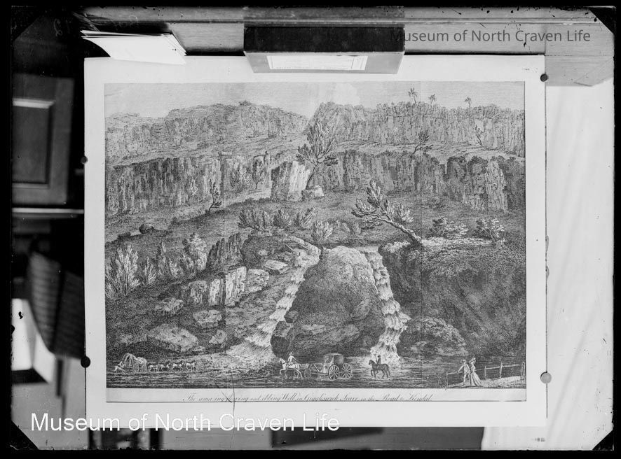 A half-plate gelatin silver glass negative. An image of an etching of the Ebbing and Flowing Well, GiggleswickCollection