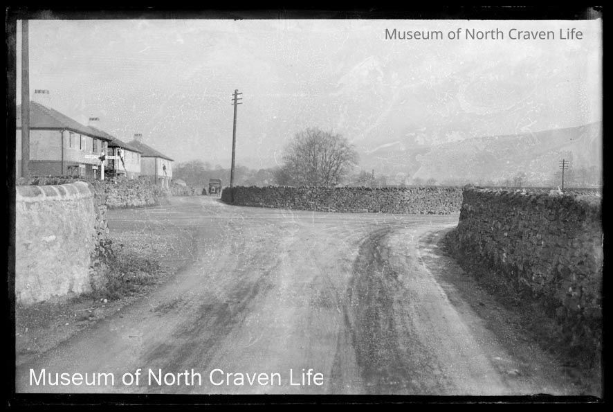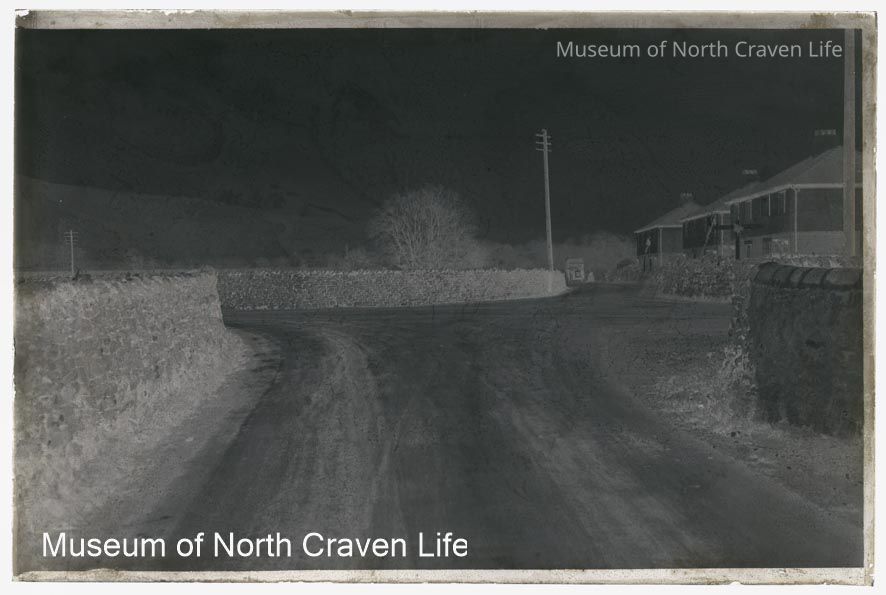A half-plate gelatin silver glass negative. A view of Four Lane Ends, Giggleswick, from the south.Collection