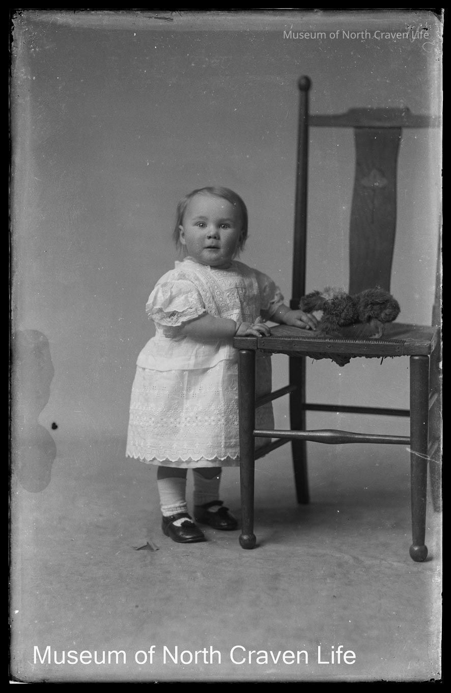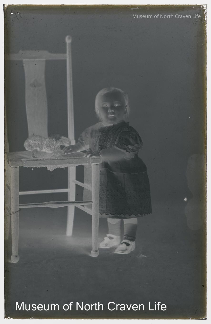 negative, glass plate - Portrait : Small girl standing by chairEntry/Object ID