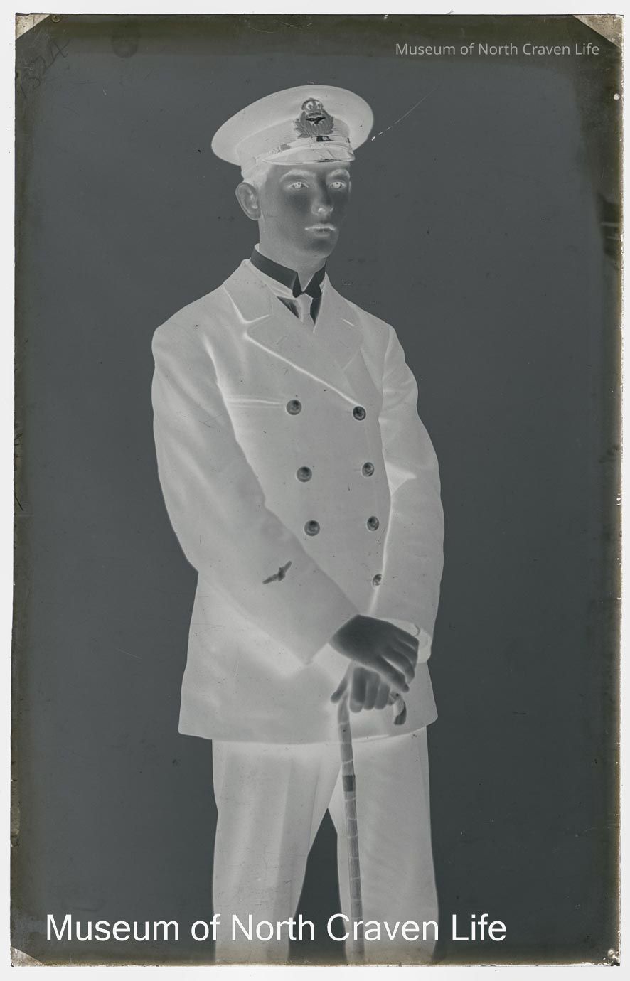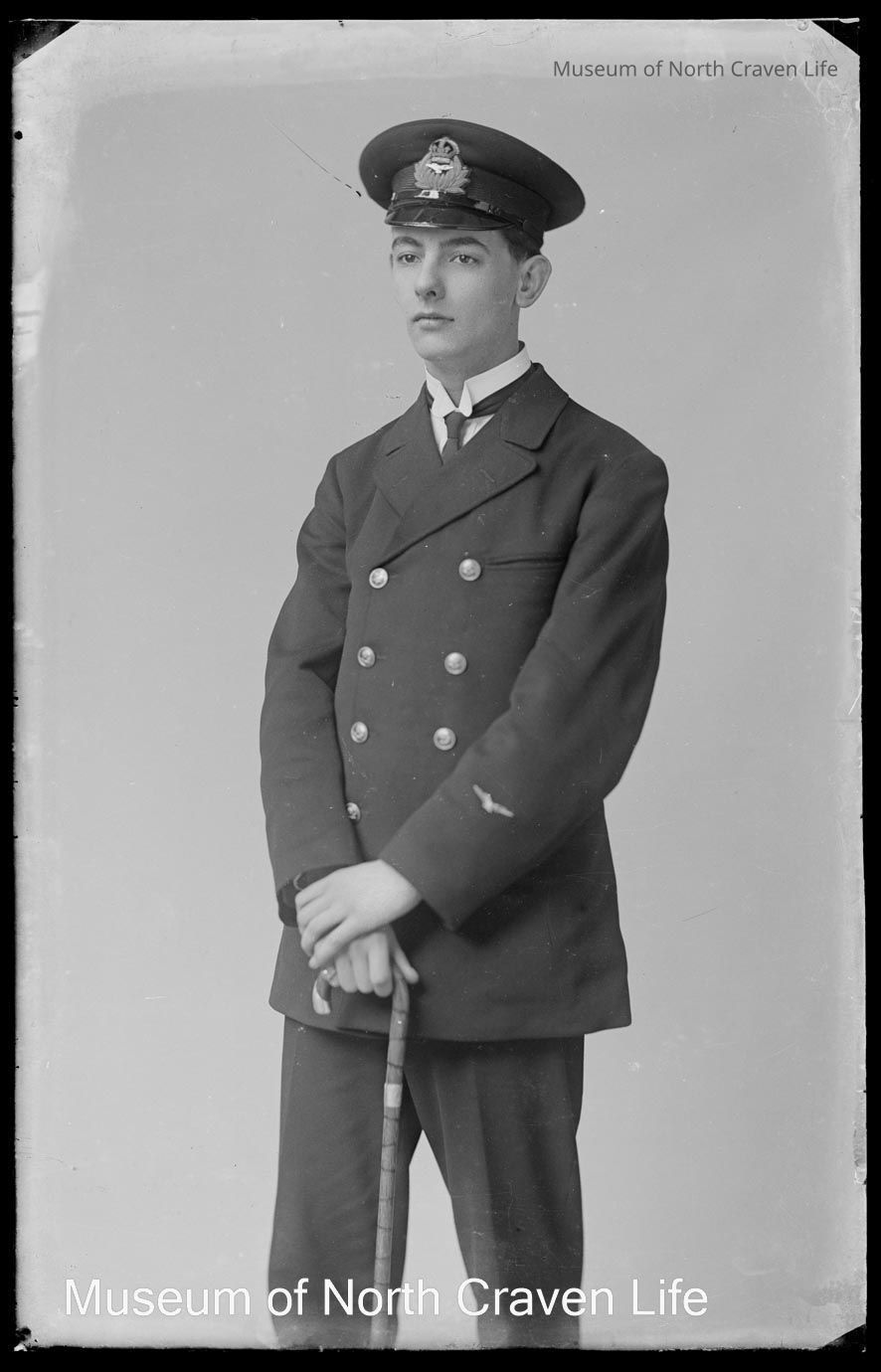 A half-plate gelatin silver glass negative. A portrait of a young man in uniform holding a caneCollection