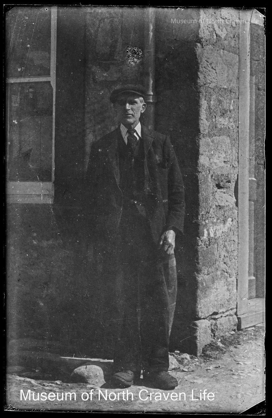 negative, glass plate - Portrait : Man standing at corner of buildingEntry/Object ID