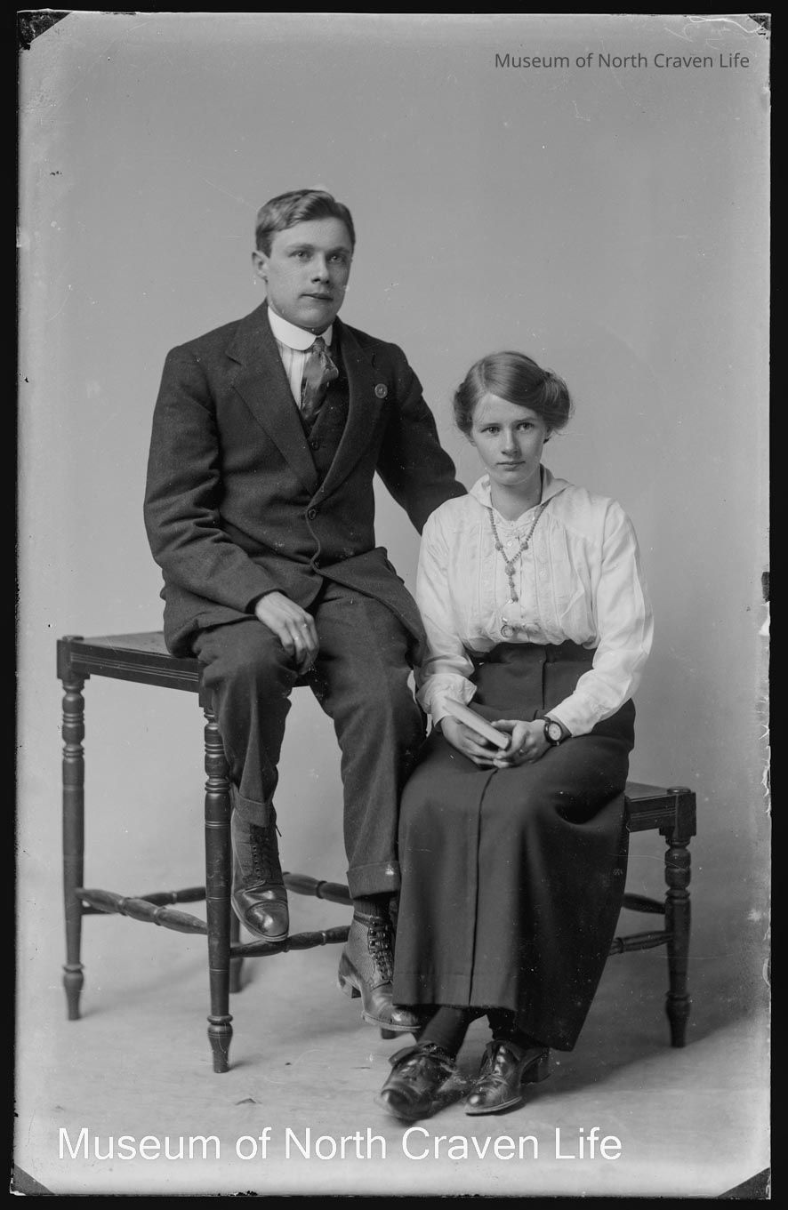 A half-plate gelatin silver glass negative. A portrait of a young man sitting on a table beside a young woman who is seated on a chairCollection