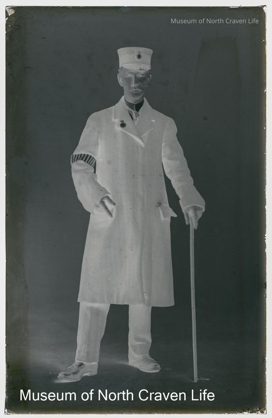 A half-plate gelatin silver glass negative. A portrait of a man in uniform. He holds a stick and is wearing black glovesCollection