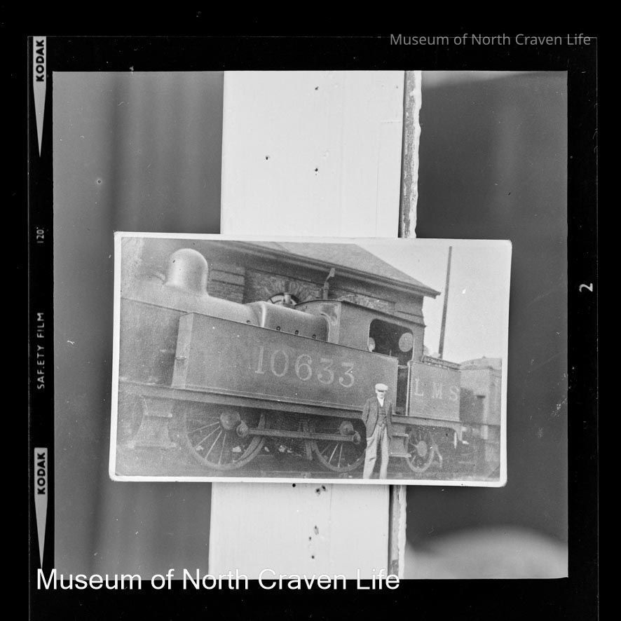 A 2½ x 2½" monochrome acetate film negative. A view of a locomotive (10633 LMS) with coal tenderCollection