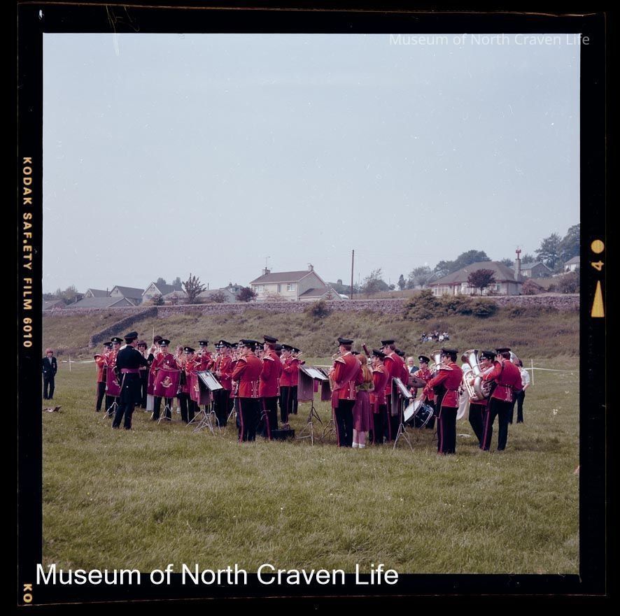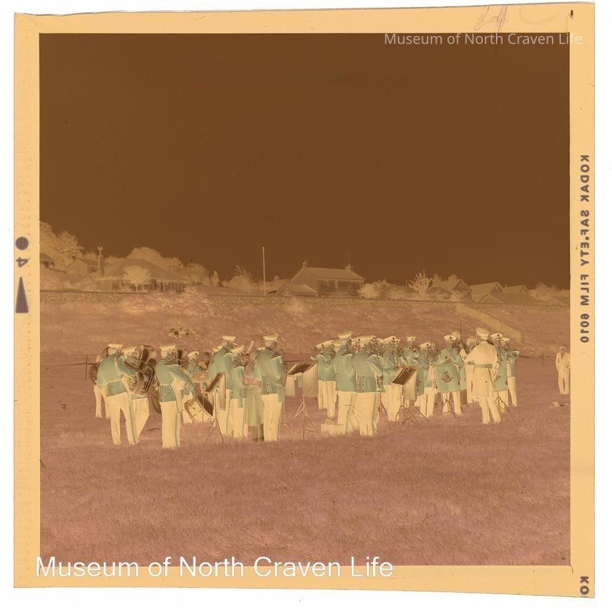 A 2¼" colour film negative. A group portrait of a military band in uniform at the Duke of Wellington Tattoo in SettleCollection