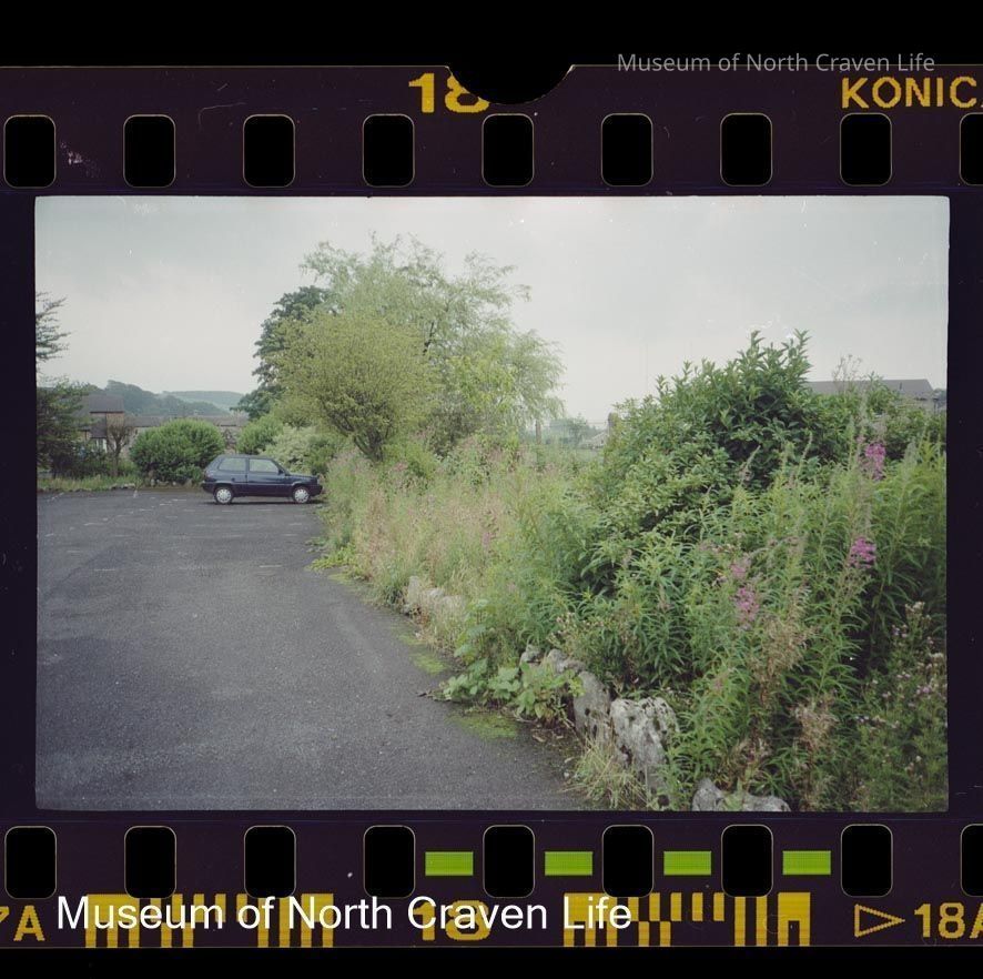A 35mm colour film negative. A view of Greenfoot Car Park gardens in Settle with a car. 1990sCollection