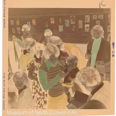 A 2¼" colour film negative. A group portrait of women and childen at an exhibitionCollection