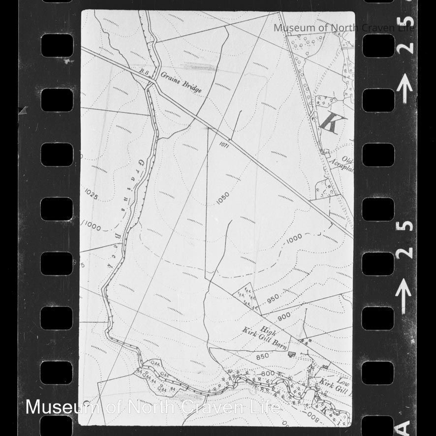 A 35mm monochrome film negative. An image of a map High Kirk Gill Barn, near SettleCollection