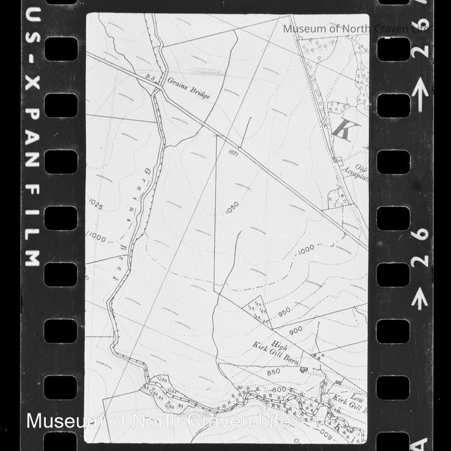 A 35mm monochrome film negative. An image of a map High Kirk Gill Barn, near SettleCollection