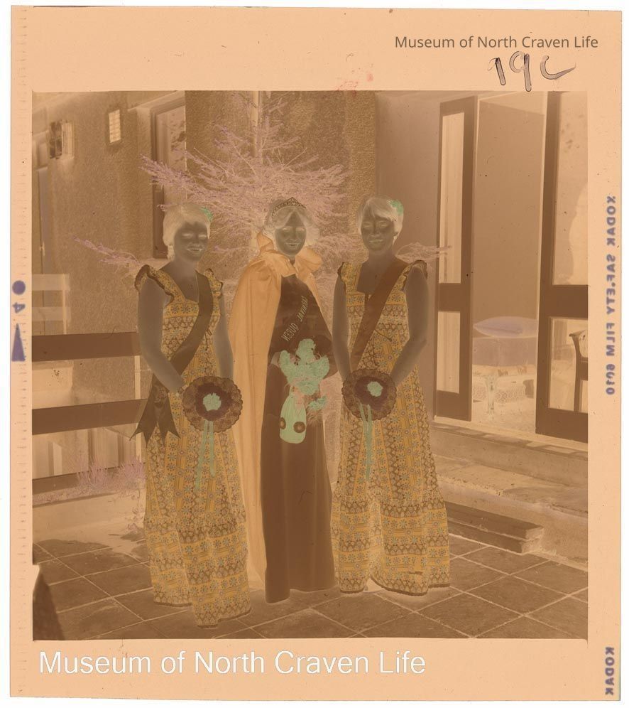 A 2¼" colour film negative. A group portrait of the Carnival Queen in full regalia, with two attendantsCollection