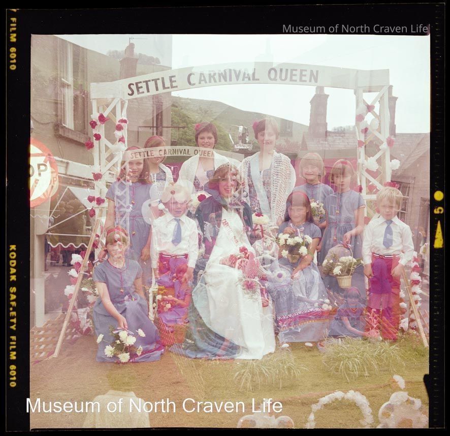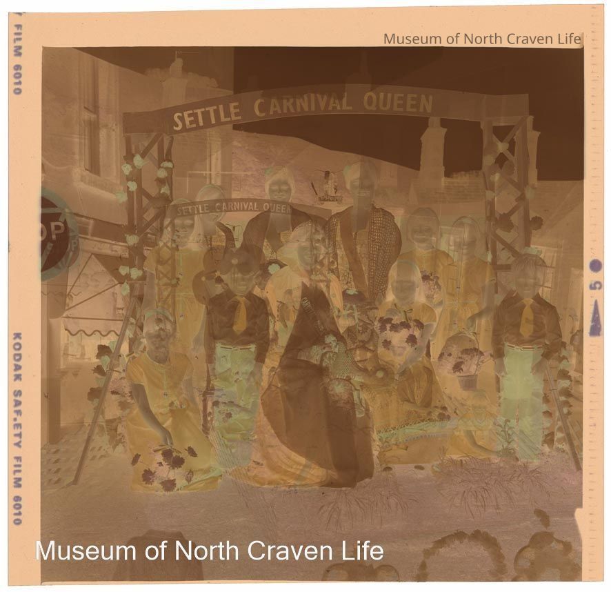 A 2¼" colour film negative. A group portrait of the Settle Carnival Queen in full regalia with a number of attendantsCollection