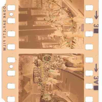 A 35mm colour film negative. A view of a carnival float in Station Road with a crowd of onlookersCollection