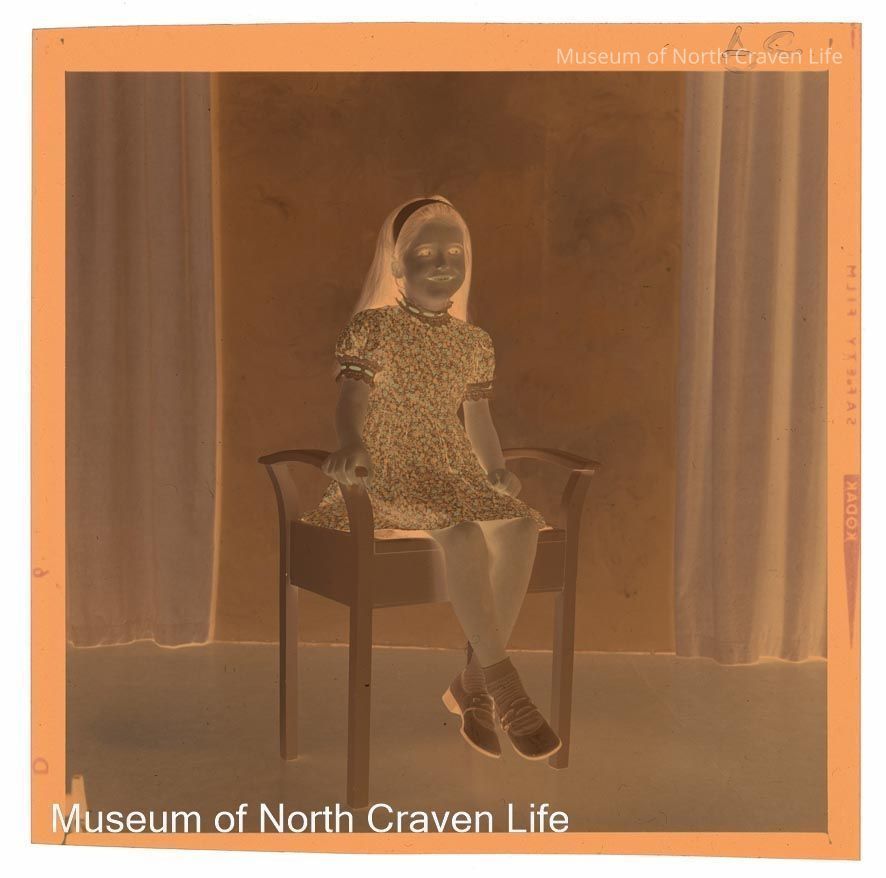 A 2¼" colour film negative. A portrait of a young girl seated on a white stoolCollection