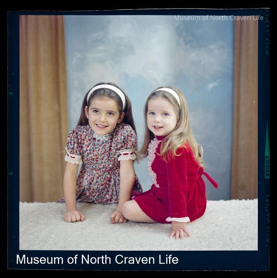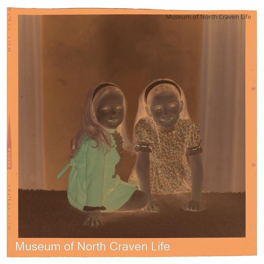 A 2¼" colour film negative. A portrait of two young girls, one standing and one seatedCollection