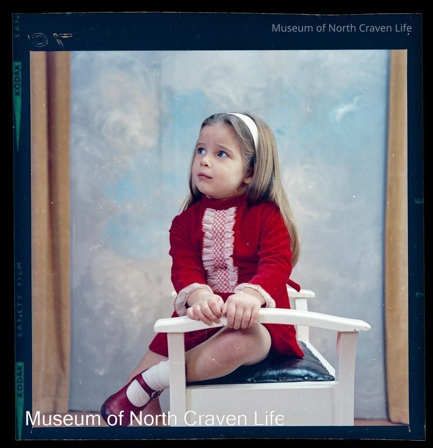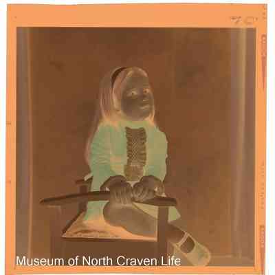 A 2¼" colour film negative. A portrait of a young girl seated on a white stoolCollection