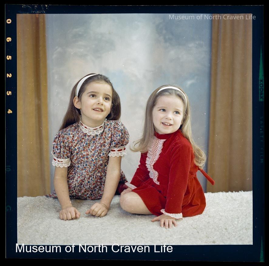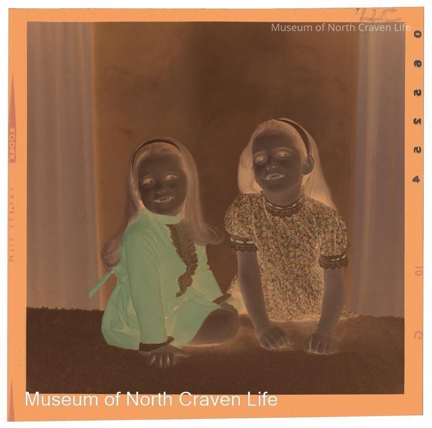 A 2¼" colour film negative. A portrait of two young girls, one standing and one seatedCollection