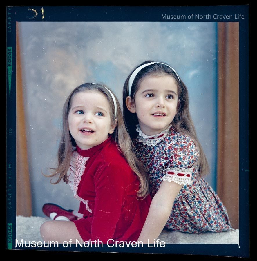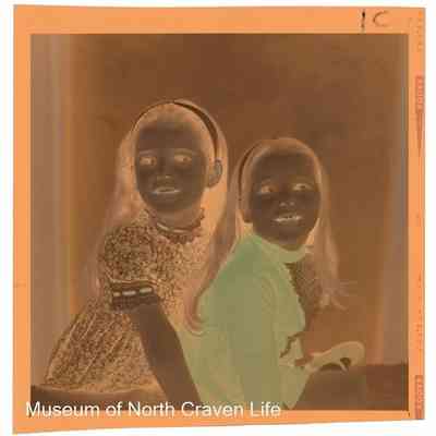 A 2¼" colour film negative. A portrait of two young girls, one standing and one seatedCollection