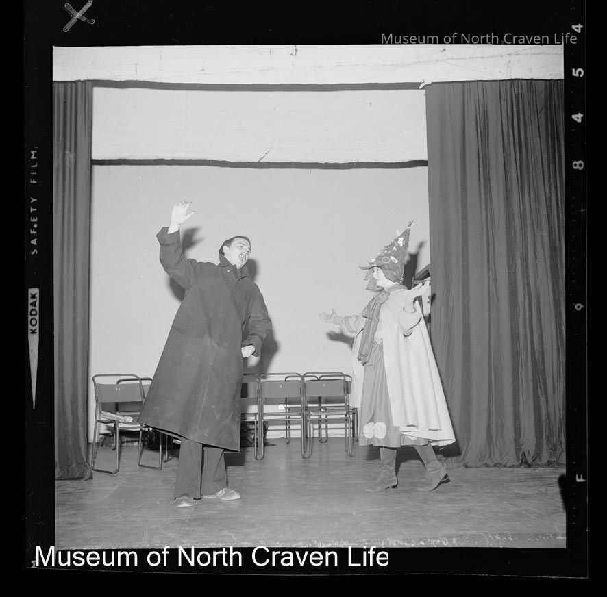 A 2¼" monochrome acetate film negative. A portrait of a young man and woman in costume, on stage at Victoria HallCollection