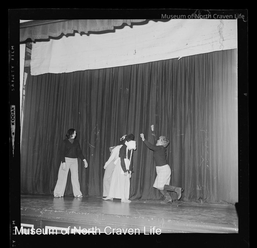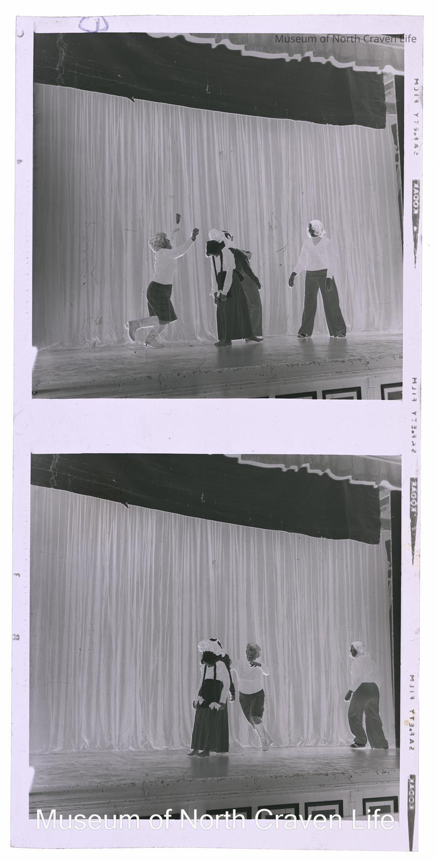 A 2¼" monochrome acetate film negative. A group portrait of four women on stage at Victoria Hall.Collection